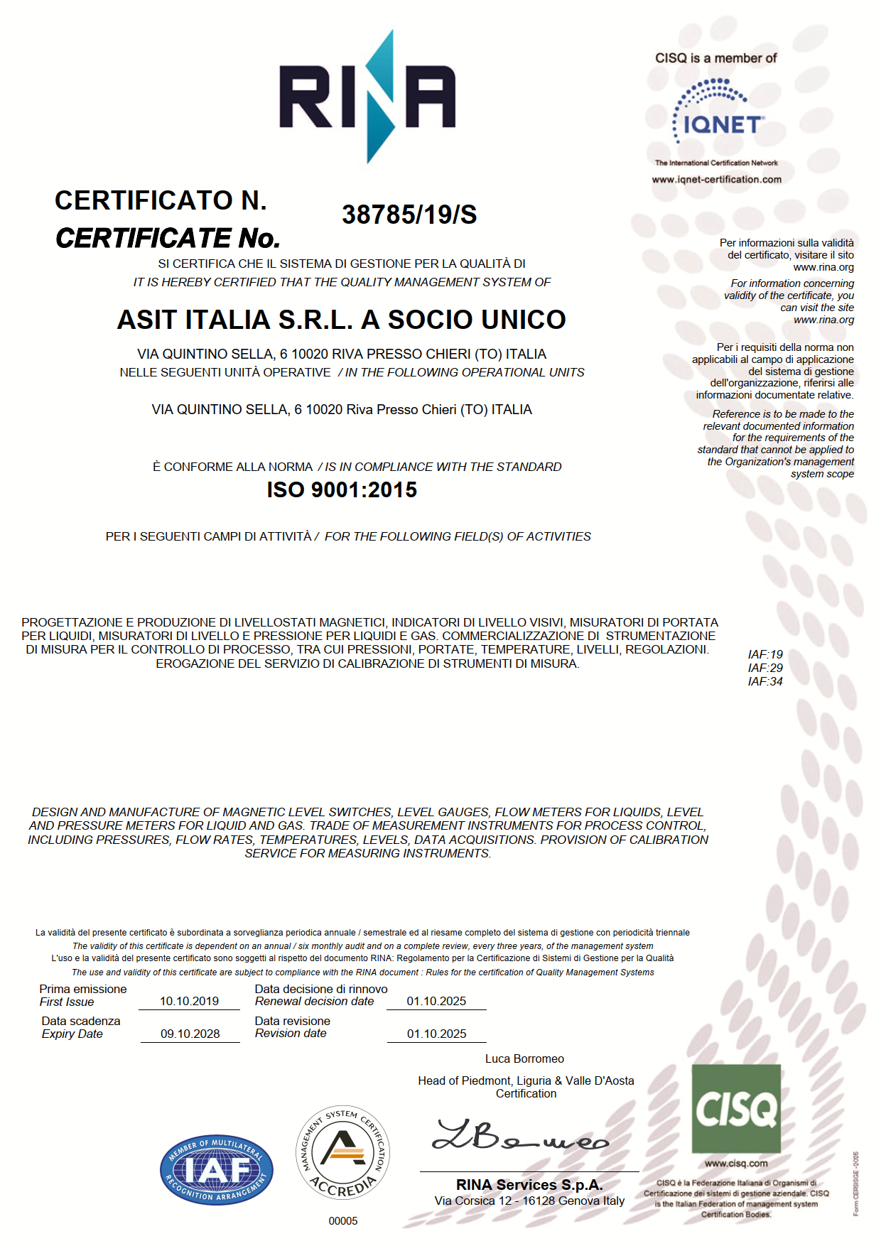 Certificazione EU RO MR Type Approval ottenuta per il nostro livellostato di sentina AI.BL Series!